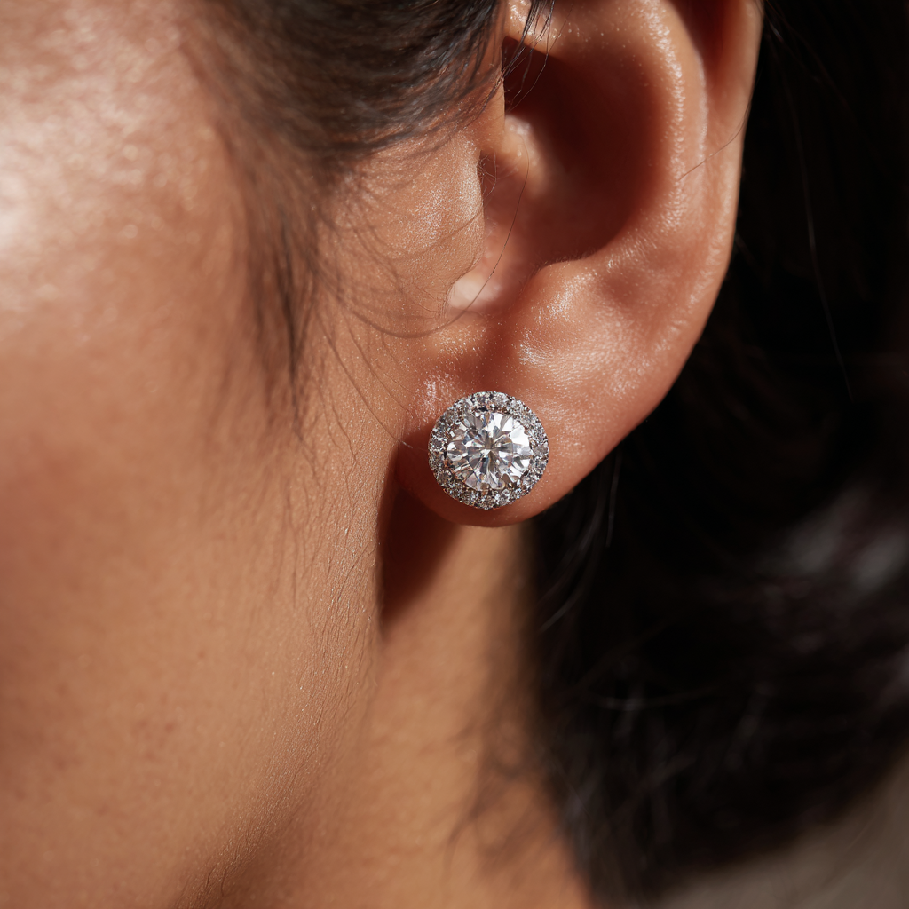 Lueur Éclatante captures the essence of light in a single stud. Crafted in sterling silver (925) and set with a brilliant-cut moissanite (1 ct, VVS clarity), its radiance rivals that of the finest diamonds. Designed to reflect elegance, prestige, and the luminous spirit of LUMIÈREN.