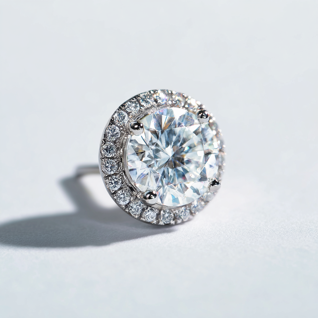 Stone: 1 ct brilliant-cut moissanite, VVS clarity
